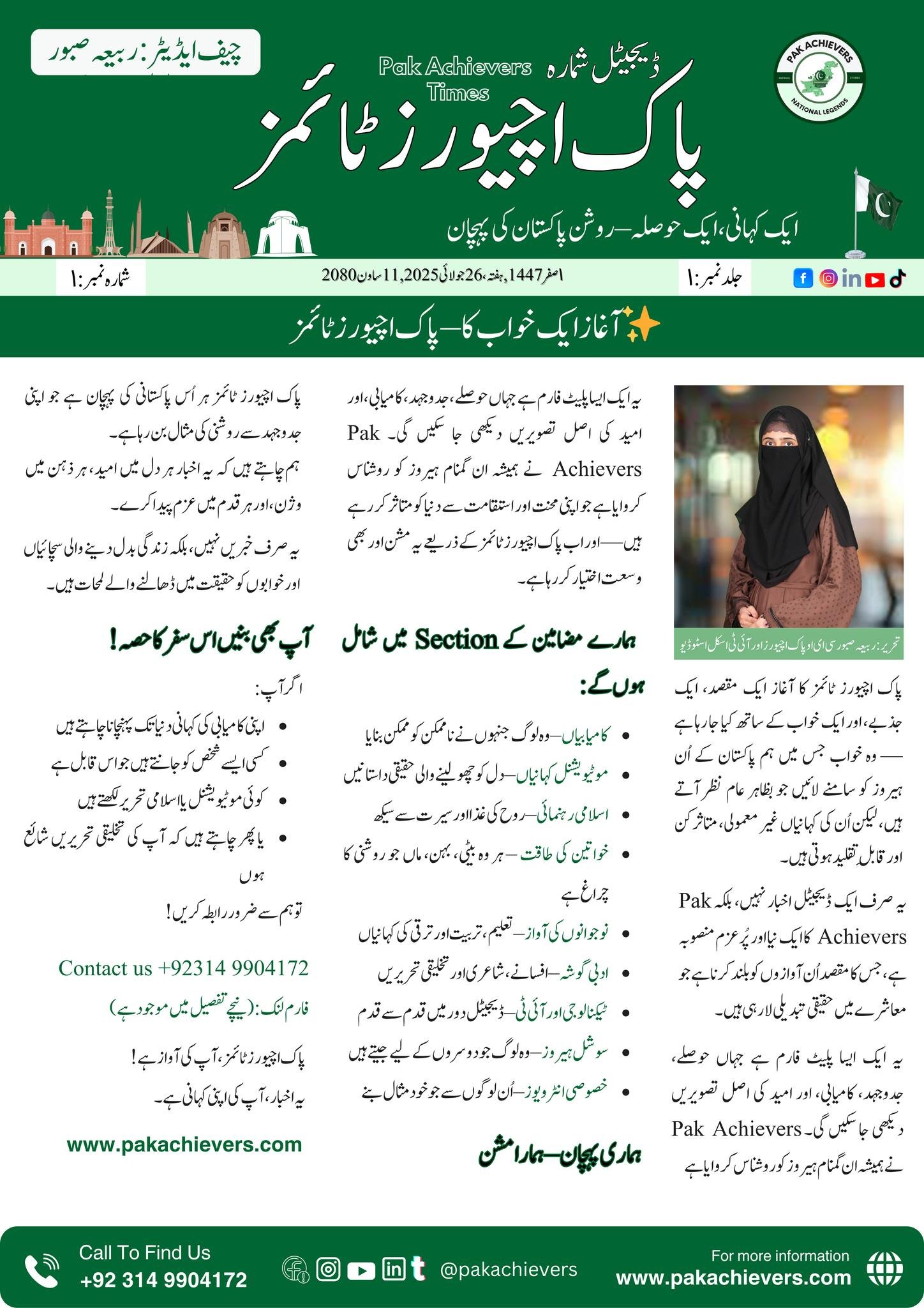 Pak Achievers Times is not just a digital magazine — it is a mission, a voice, and a movement. Our purpose is to highlight the true heroes of Pakistan, those individuals who may look ordinary but whose stories are extraordinary, inspiring, and worth sharing.